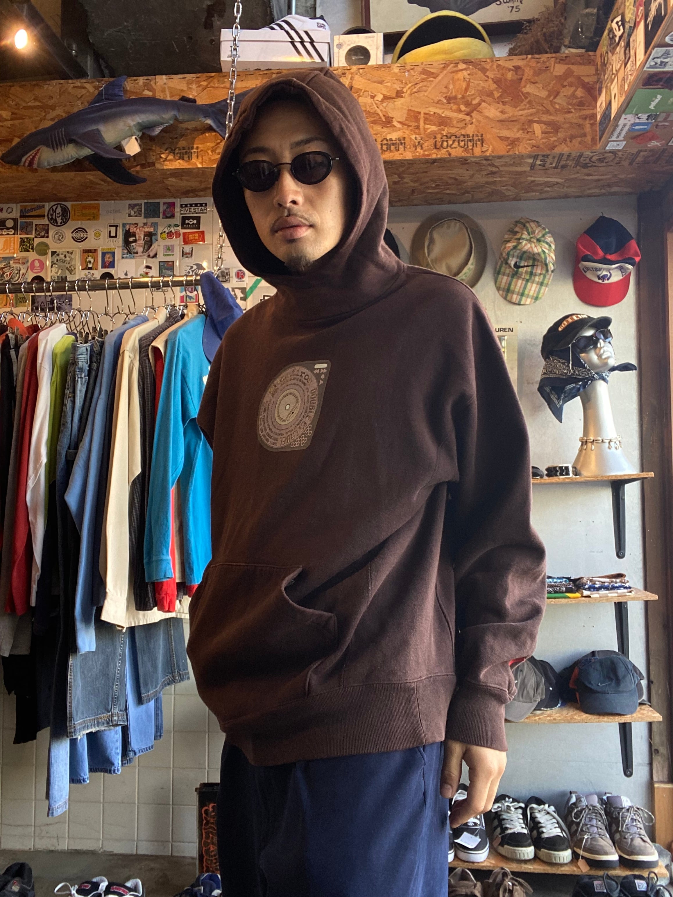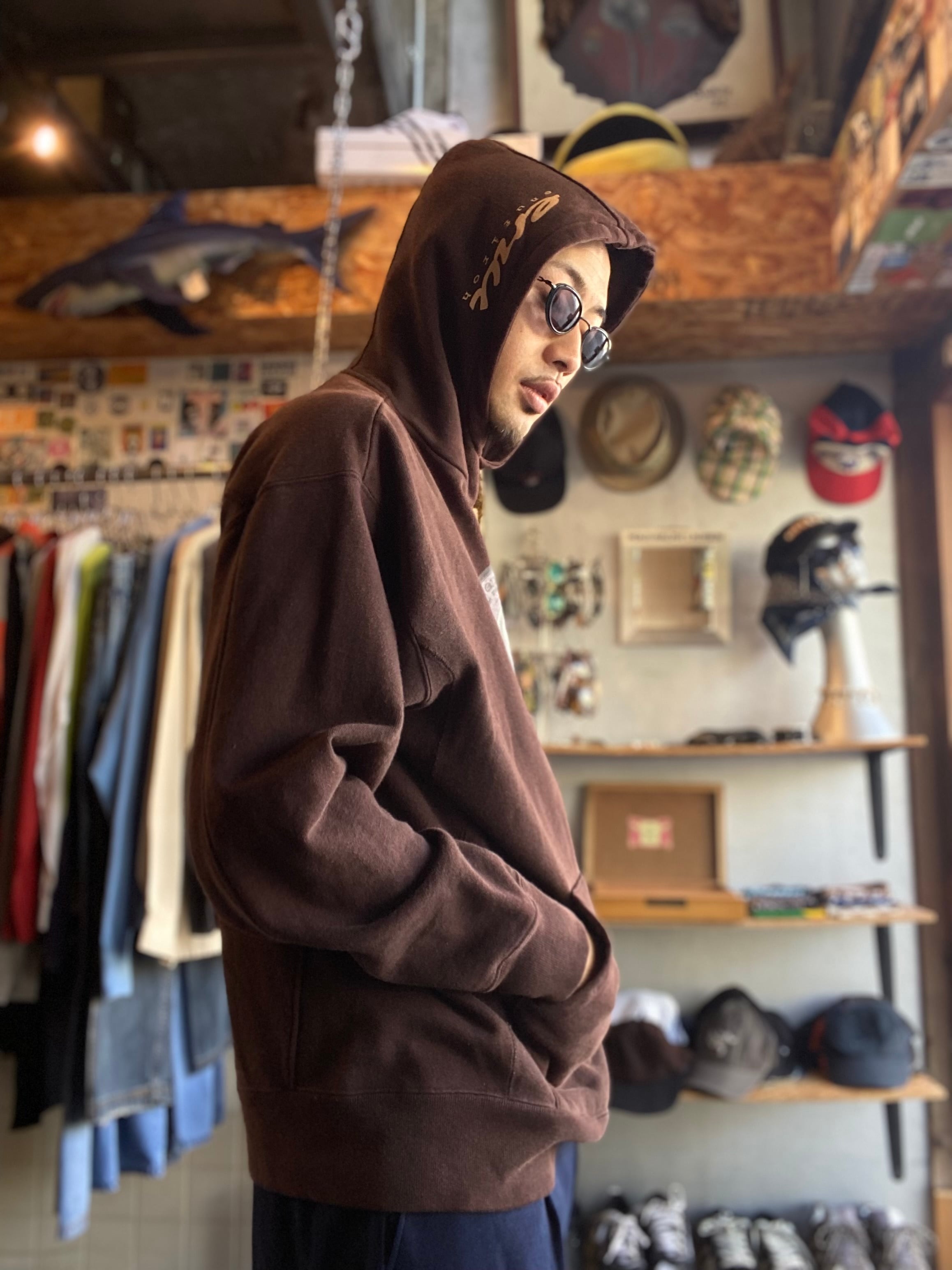 初見ですがハイネックフードでプリントも良デザインなフーディー