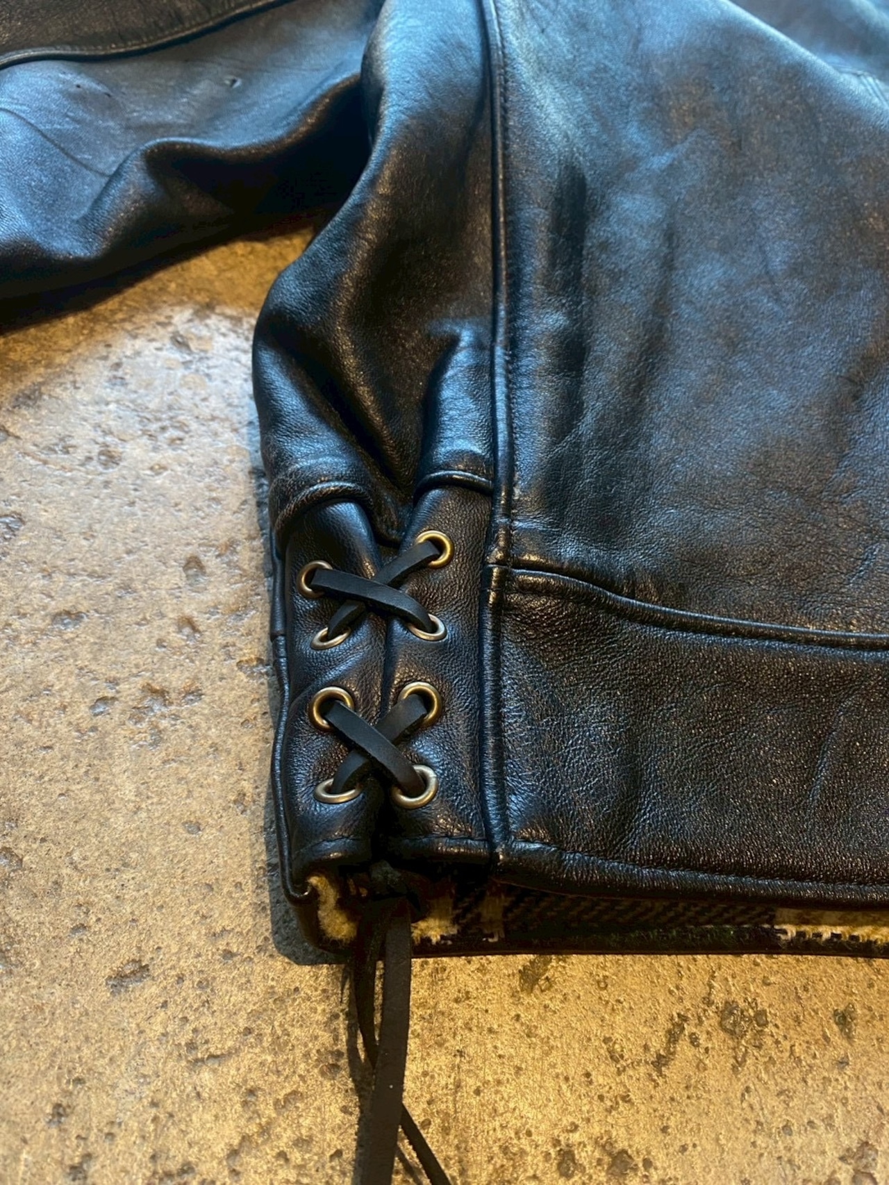 レザーが剥がれてその上から黒クリームで塗ってます