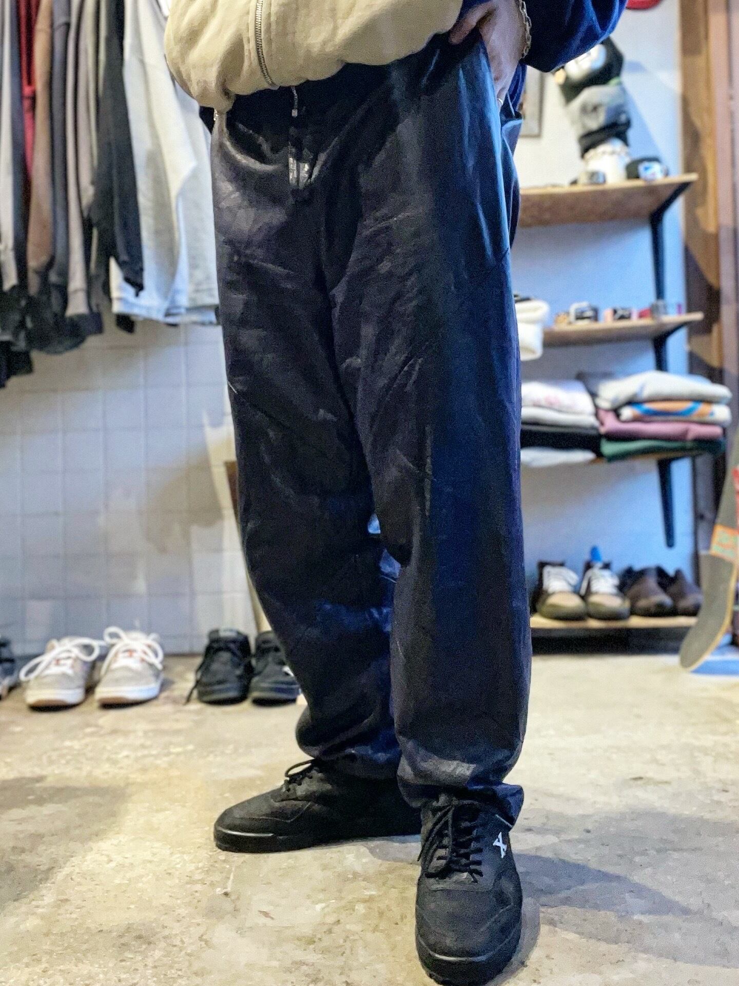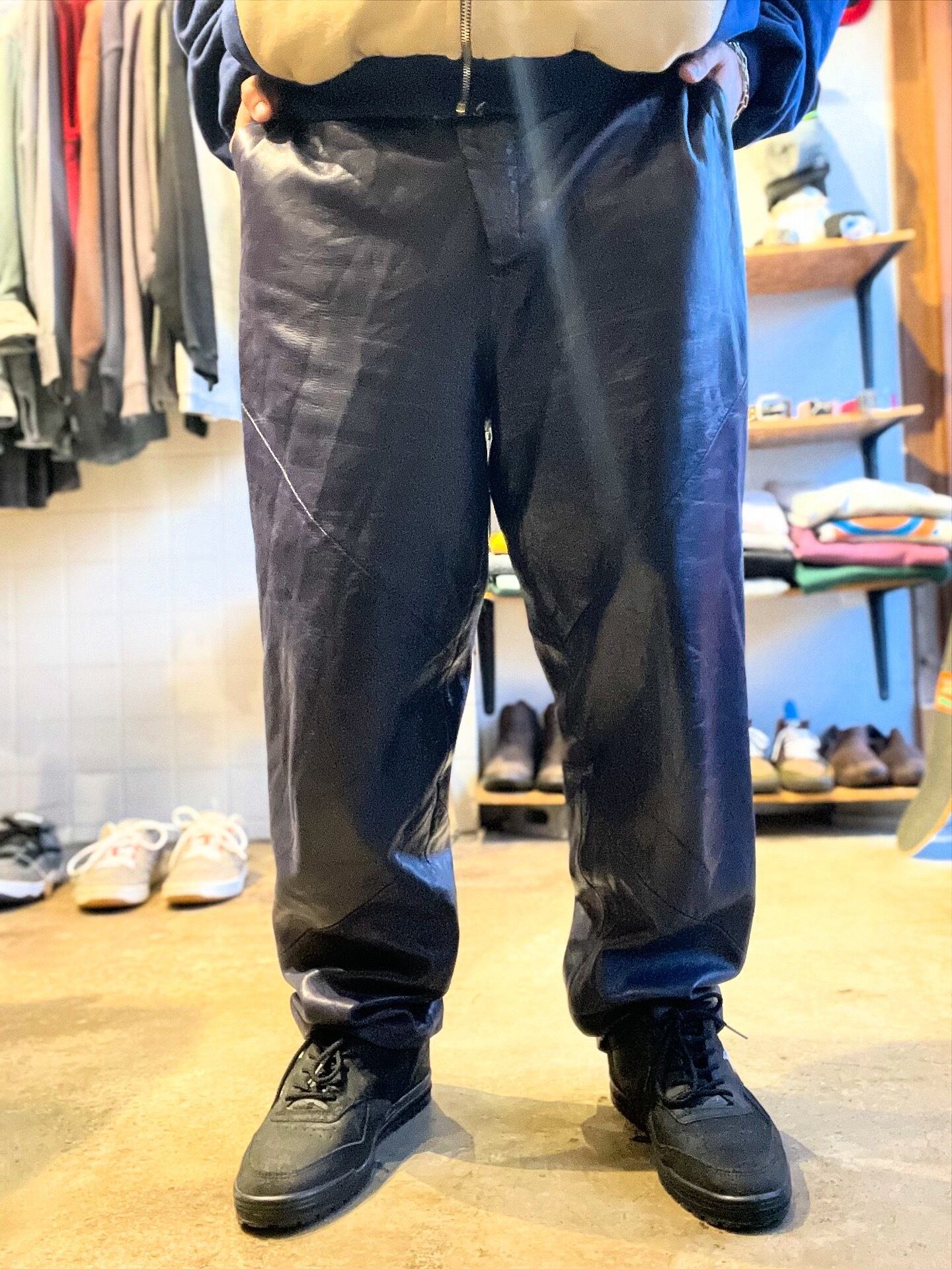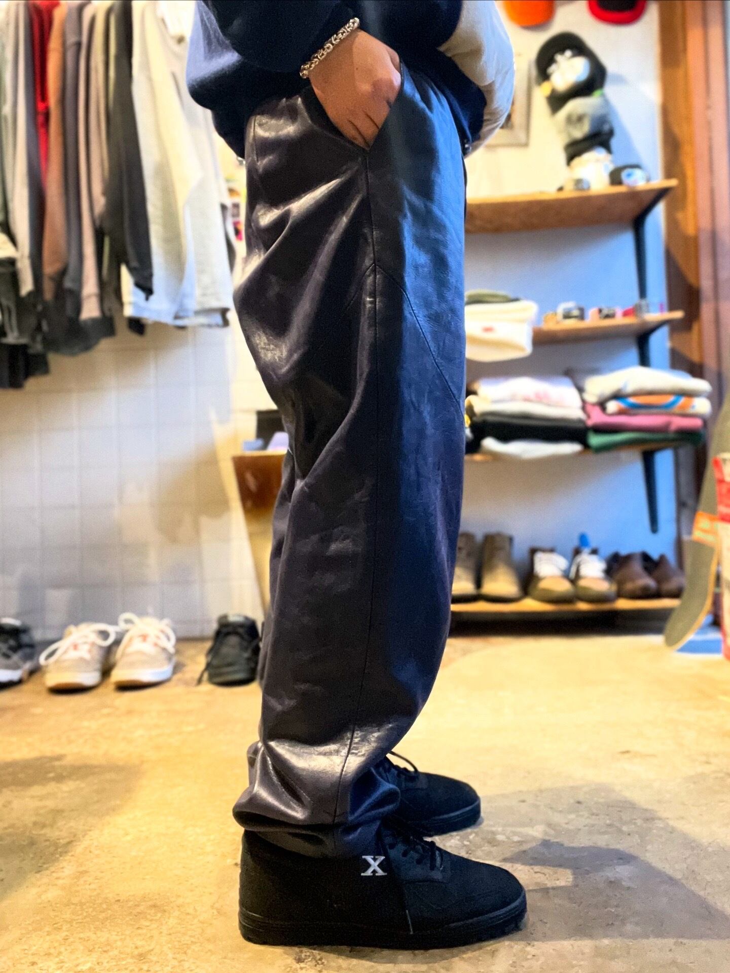 ネイビーのラムレザーパンツ!めっちゃ柔らかくて履きやすいです