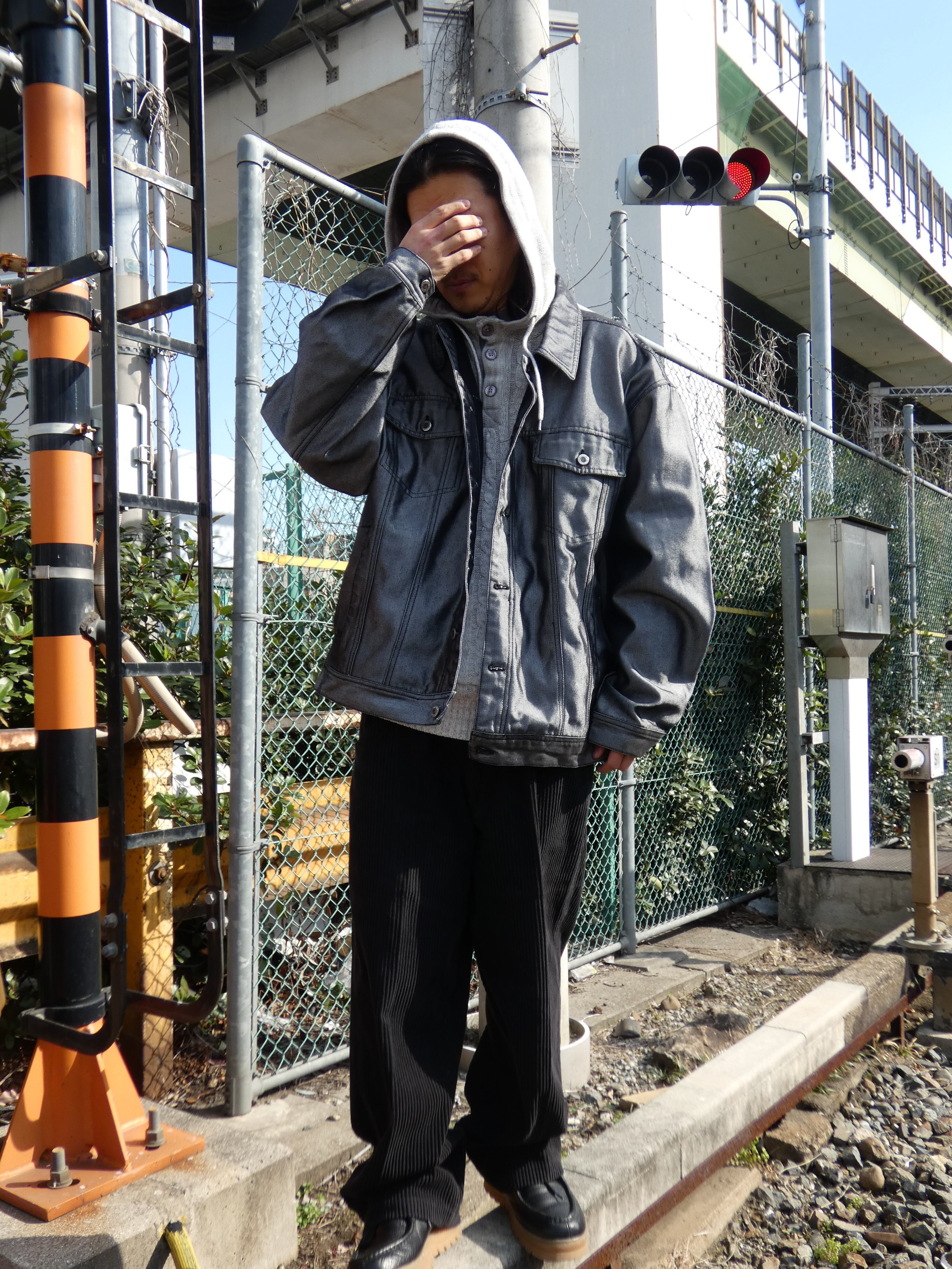 重いトーンのメタリックデニムは無骨さを演出してくれます